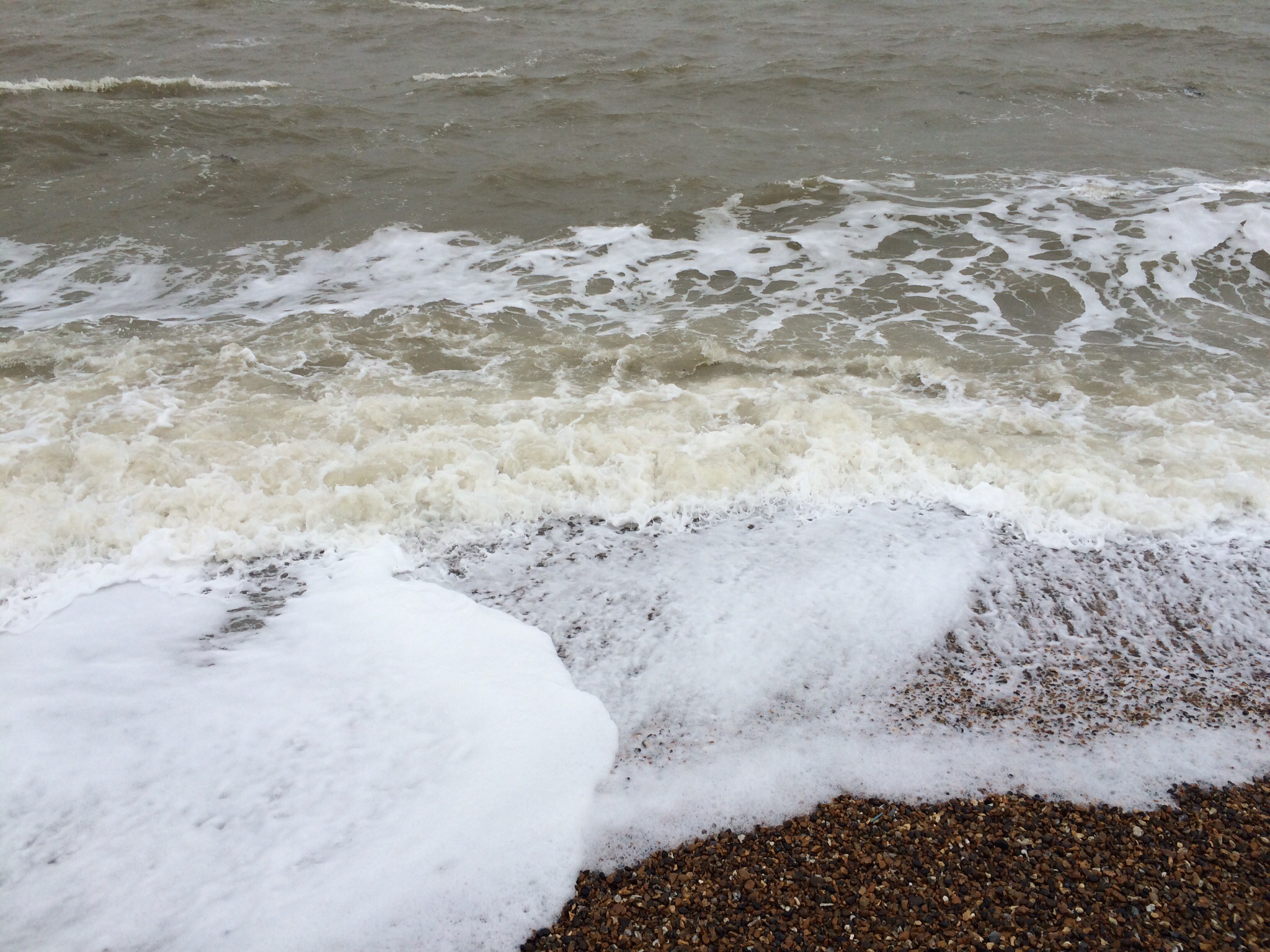 No one can stop the waves as they crash against the shore and grind the stones into fine sand. The water looks brown as the sand below gets mangled up in the water and the whole mass of matter is beaten and churned into sea soup…